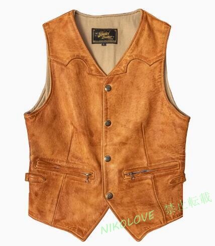 > 新品 秋冬 レトロ 本革 ユーズド加工 羊革 ライダースジャケット 革ジャン ベストジャケット S~5XL ブラウン