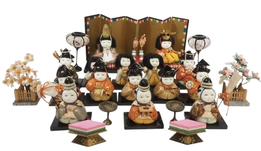 - 昭和期ビンテージ 木目込み十五人揃 雛人形セット 箱無 1980年代 TMA704