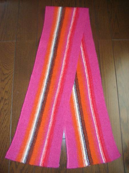 > 美品 Spick&Span マフラー ストライプ柄 ショッキングピンク ~定型外送料無料 スピックアンドスパン 日本製 ベイクルーズ