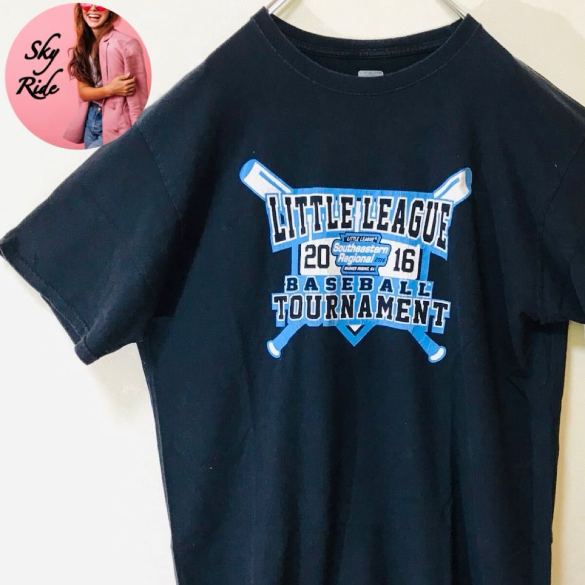 - RUSSELL LITTLE league Baseball メンズ ビッグプリント ヴィンテージ 半袖Tシャツ ブラック XL ビッグシルエット USA 古着 #TT0176