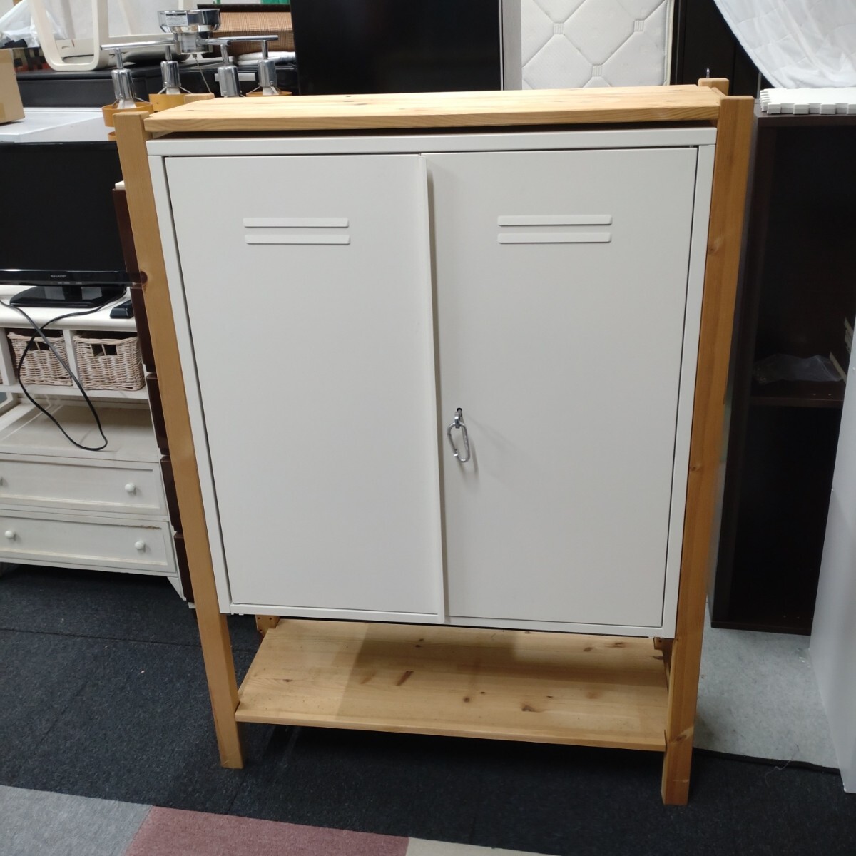 - 【店頭渡し推奨】書類棚 キャビネット 収納 戸書庫 本棚 木製フレーム スチール製庫 鍵付き 中古 現状渡し
