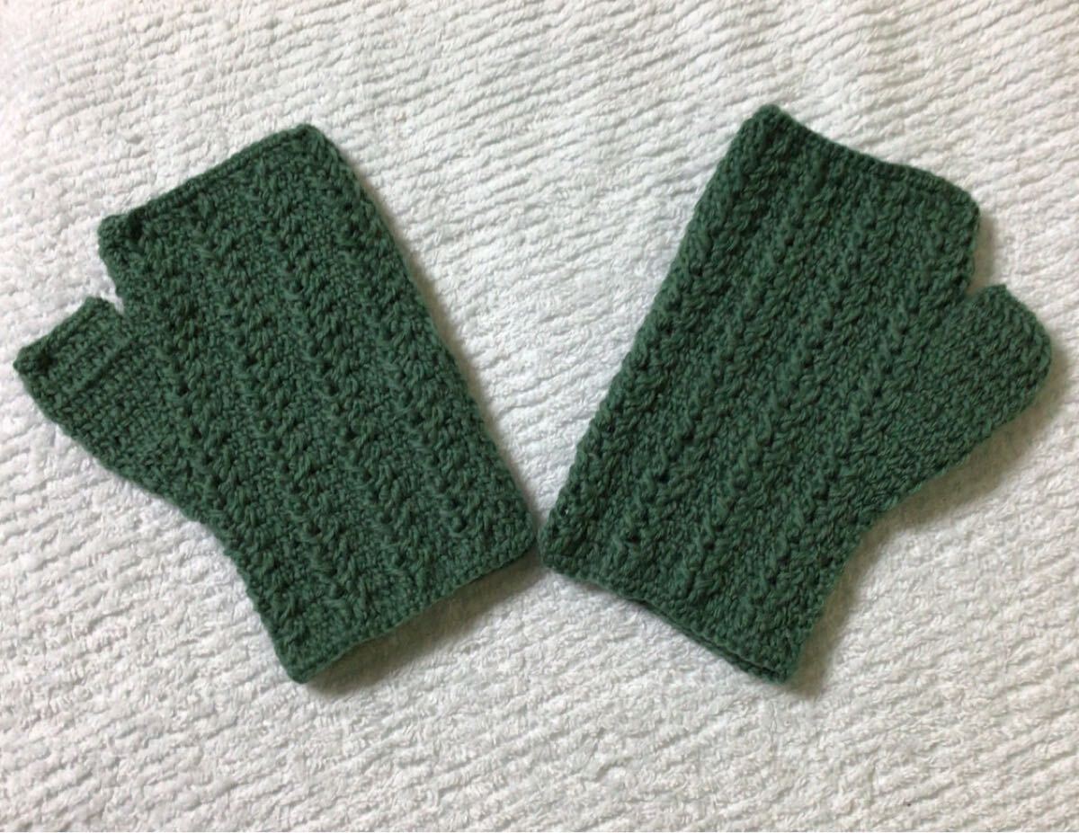 - 【編ハ-3】手編みのハンドウォーマー 指先なしのミトンタイプ スマホ、パソコン操作、読書等作業がしやすく便利♪ 左右どちらでもOK!