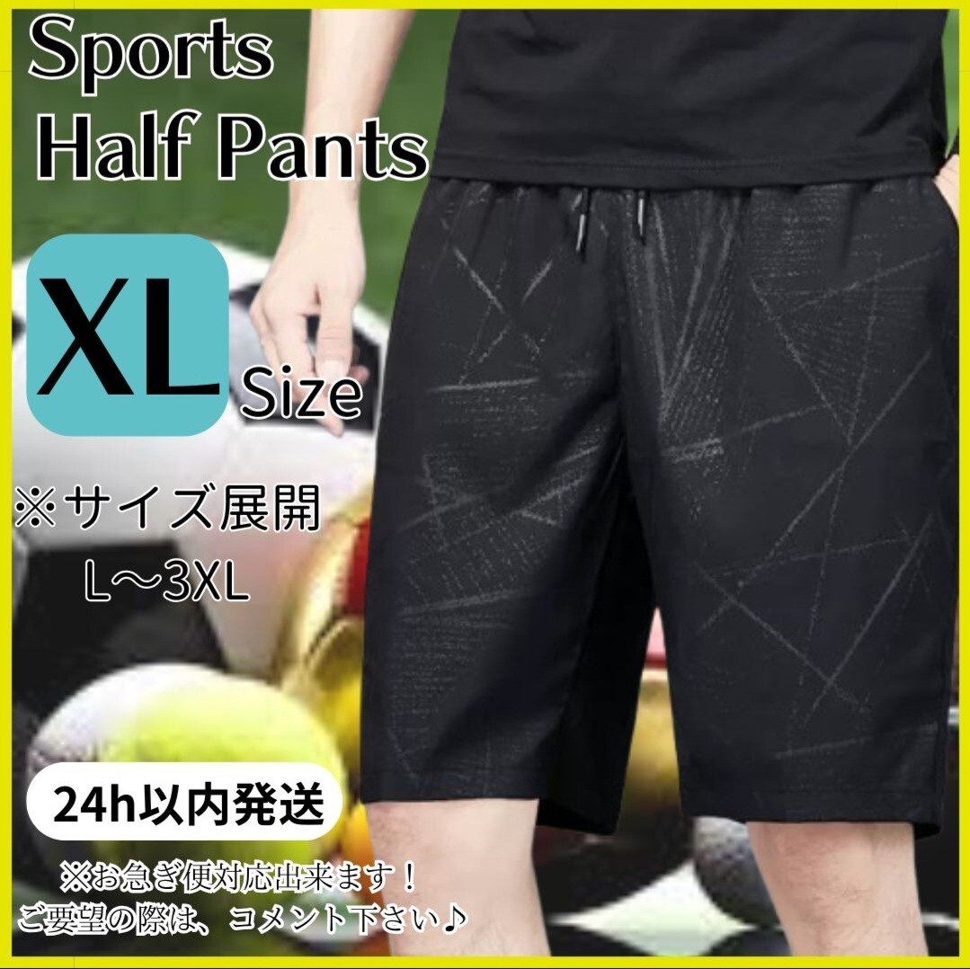> XL ハーフパンツ メンズ スポーツ 膝丈 ひざ下 短パン ペンシル スプラッシュ ブラック 黒 伸縮性 速乾性 吸汗速乾 テニス サッカー