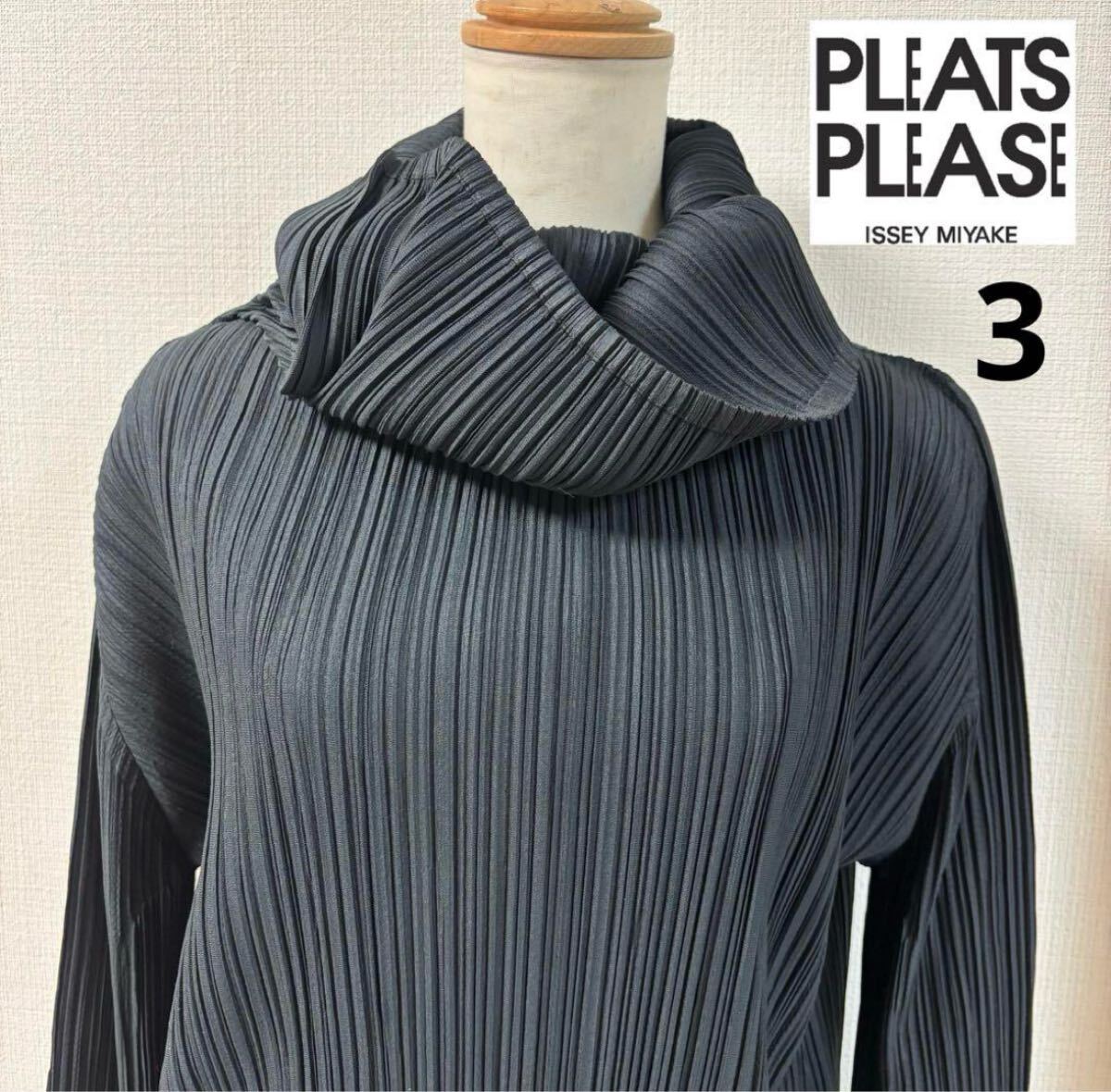 - 美品◇プリーツプリーズ◇タートルネック カットソー◇BLACK◇イッセイミヤケ