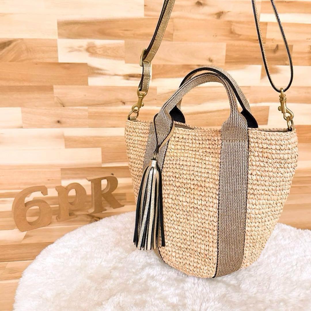 光の加減でキラキラと輝くラメが散りばめられたテープ、ハンドルが映える大人オシャレな逸品。ナチュラルな雰囲気に上品さをプラスした高級感のあるVIOLAd'OROのショルダーバッグです。