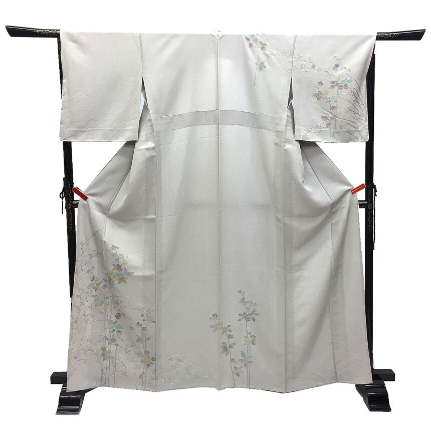 > 京やH163 正絹 特選 訪問着 附下 伝統工芸品 汕頭刺繍 ししゅうの訪問着 パールトーン加工済み 単衣の時期の着物 単衣仕立て 未使用