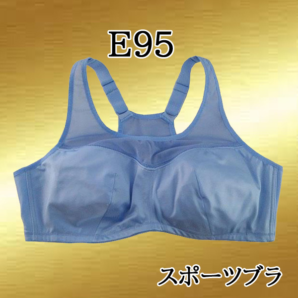 - SI5926◇ 新品 スポーツブラ 肩ひも調節可 肩紐前からカップ上メッシュ バックH 背中メッシュ E95サイズ アイスブルー 送料350円