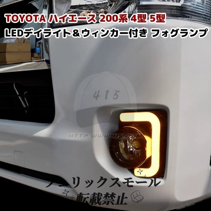 - トヨタ ハイエース 200系 2014-2018年式用 C型LEDフォグランプ 日中走行灯付き カスタムパーツ