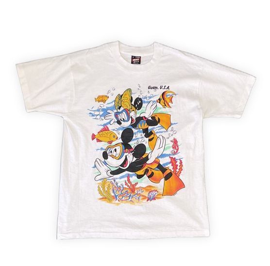 - 90's 米国製 フルーツオブザルーム BEST ホワイト Tシャツ 白T Disney ミッキー ミニー 海 Guam L [la-1257]