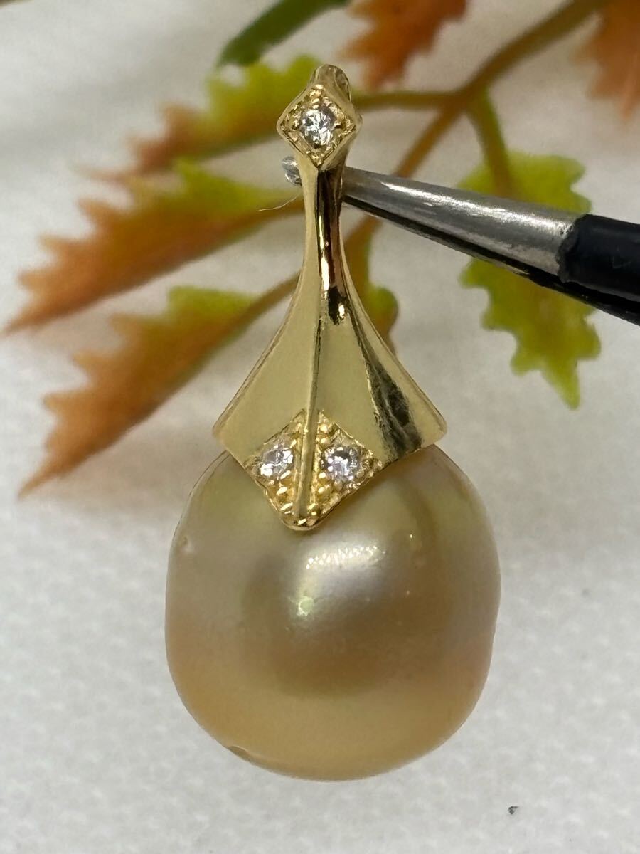 - 白蝶南洋真珠バロックパール 大 粒ゴールデンペンダントネックレス新品(N614)