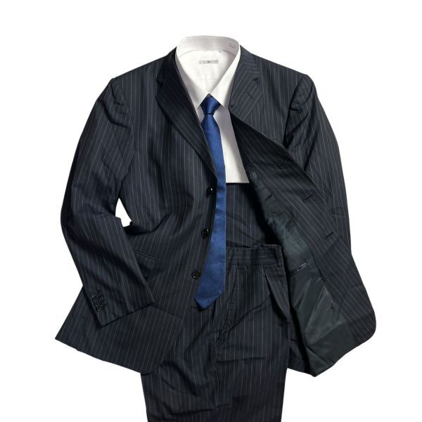 > 外観美品シルク混ゼニア セットアップスーツ 上下 テーラードジャケット 春夏~通年 ウール ストライプ メンズM Ermenegildo Zegna B0414