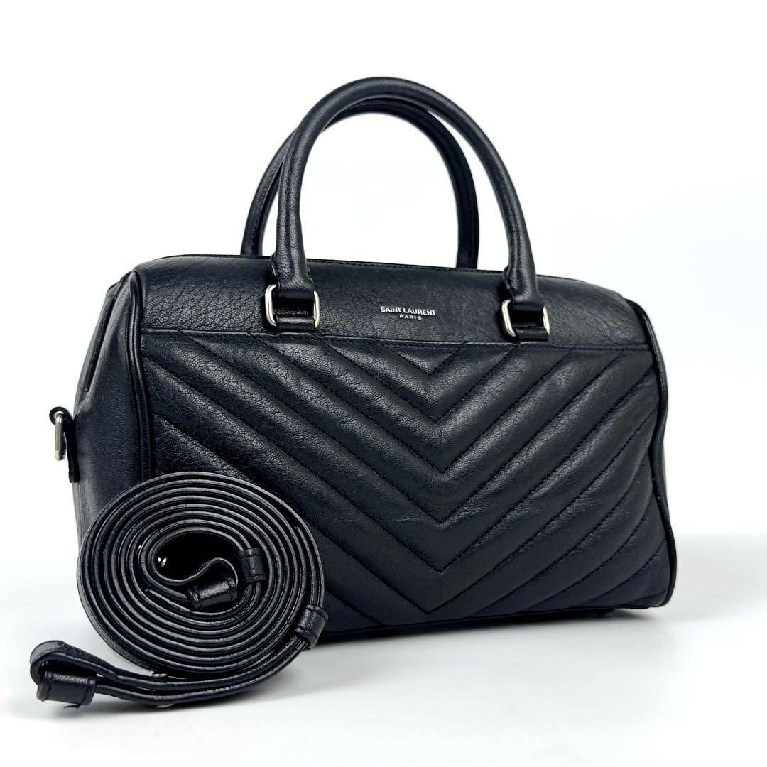 - 【美品】SAINT LAURENT サンローラン ハンドバッグ 2way ダッフルバッグ キルティング ショルダーバッグ レザー ブラック 黒色 フォーマル