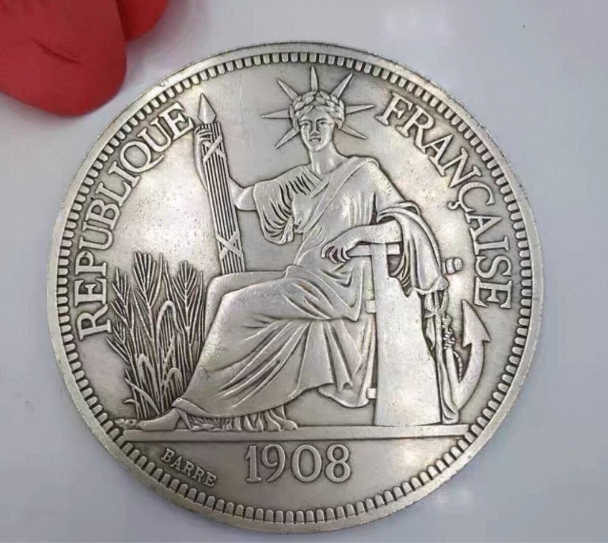 - 極美品 希少 フランス領 古銭 骨董品 大型硬貨 外国銀貨 貿易銀