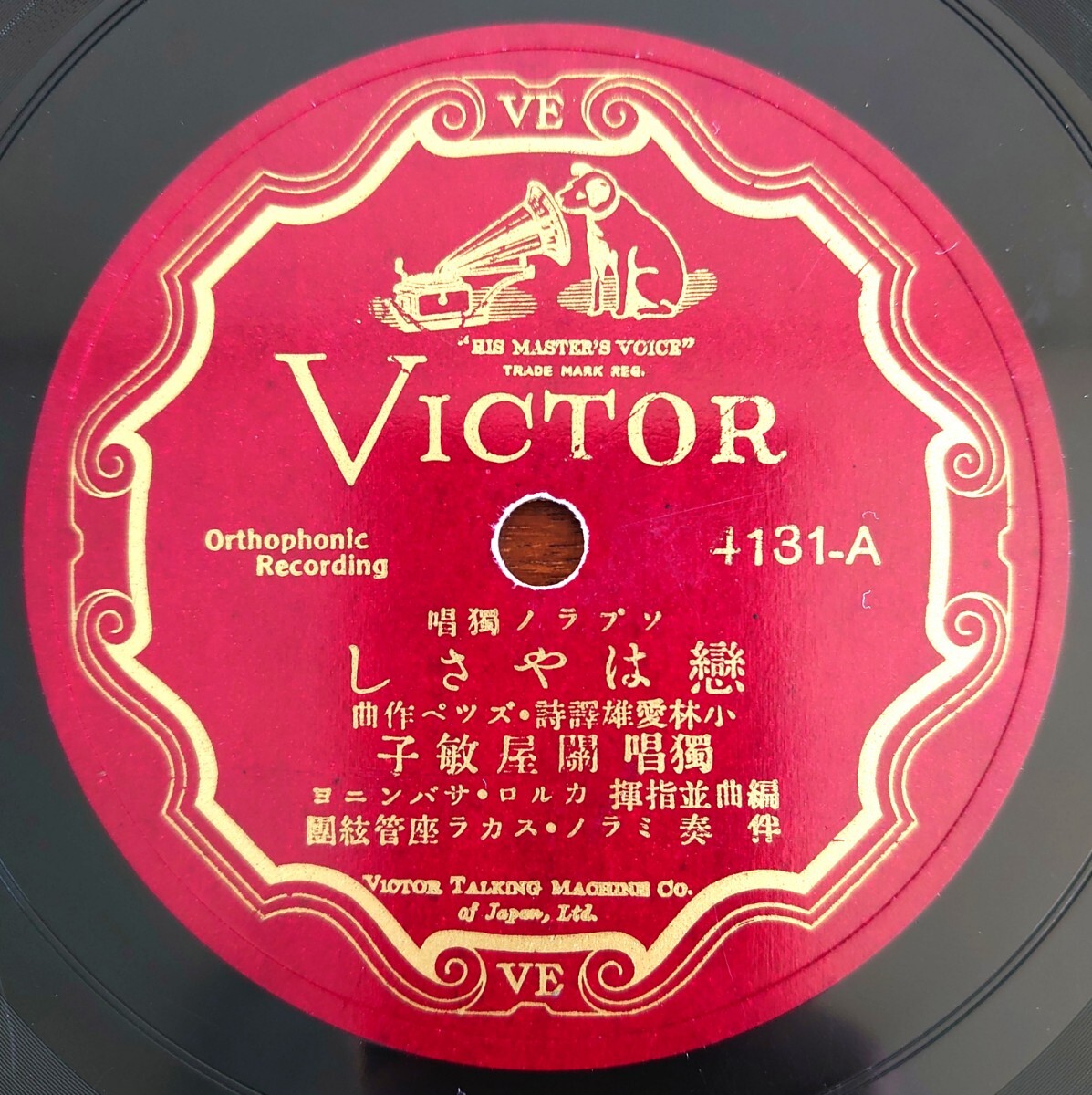 - 【SP盤レコード】VICTOR 4134-AB ソプラノ獨唱/戀はやさし-恋はやさし/蛍來い-蛍来い/獨唱:關屋敏子