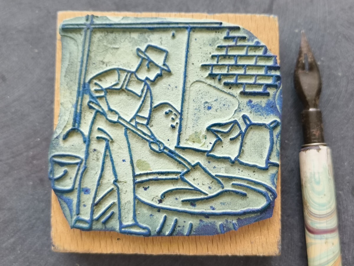 - 左官 セメント コンクリート モルタル 大工 フランス アンティーク 子供 仕事 スタンプ ヴィンテージ ハンコ イラスト 素材