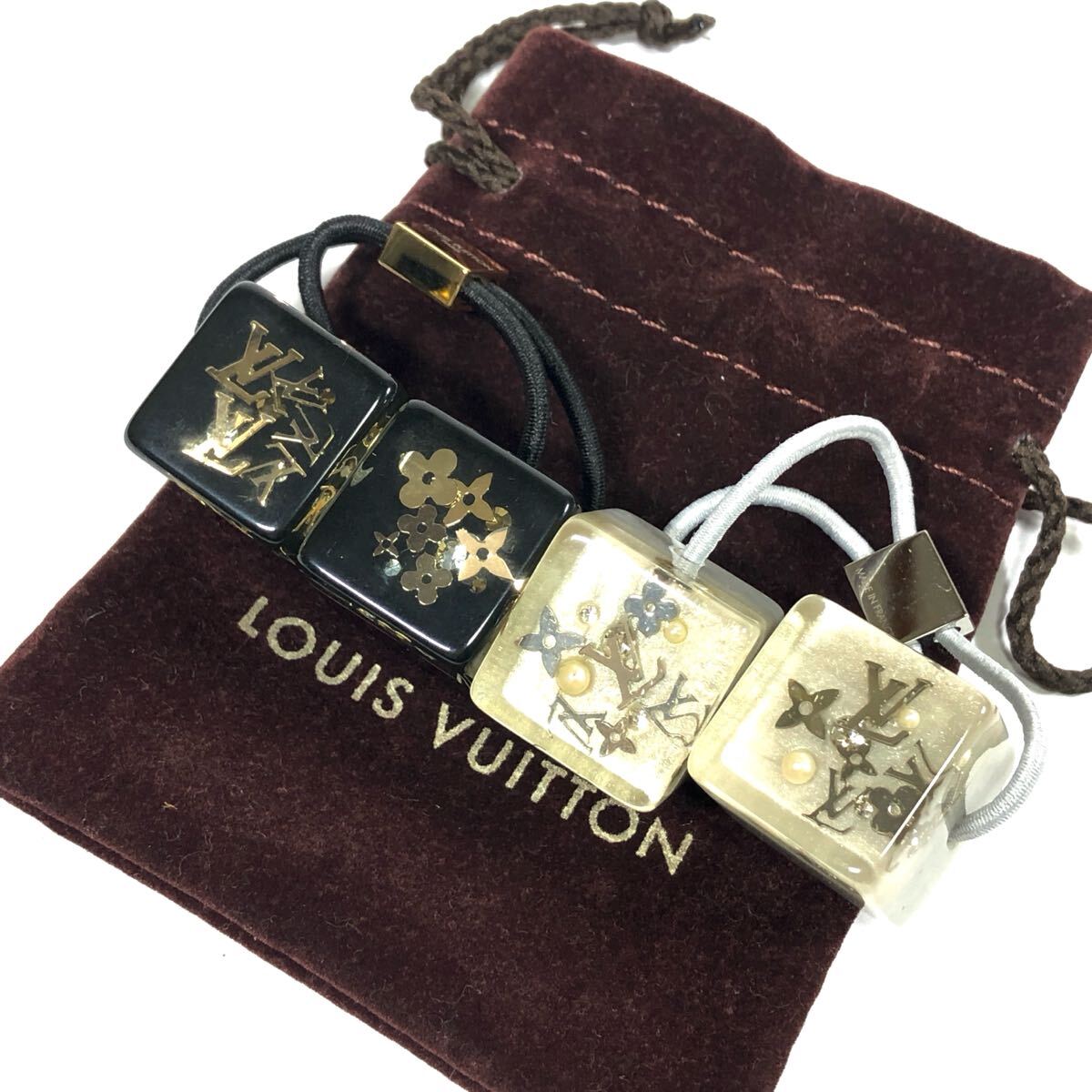 - 【ルイヴィトン】基準内 LOUIS VUITTON アンクルージョン ヘアキューブ 髪留め ヘアゴム 幅2cm グレー×黒 レディース フランス製 保存袋付