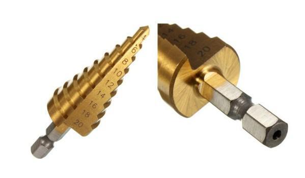 - 【普通郵便送料無料!】ステップドリル タケノコ チタン 六角軸 4-20mm 9段 面取拡大に(000)