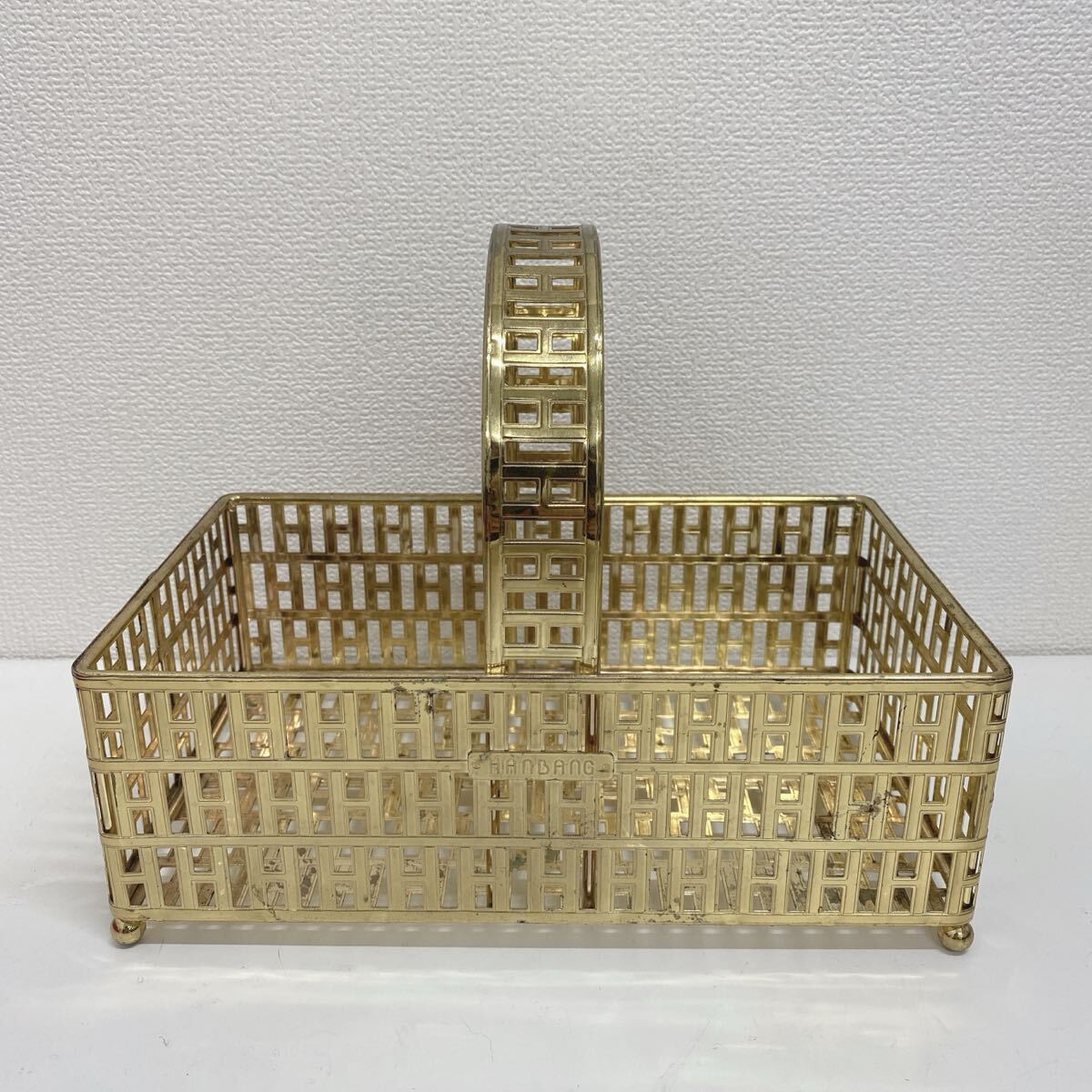 - refle● 金属製バスケット インテリア 小物入れ 昭和レトロ アンティークデザイン ヴィンテージ調 ジャンク 現状品