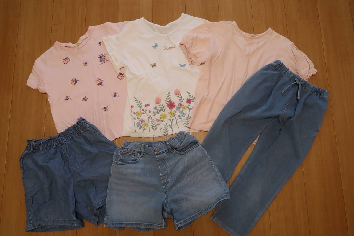 > 140~150サイズ HusHush、3can4on、ユニクロなど、可愛い Tシャツ 半ズボン 6点 まとめ売り 夏服 女の子