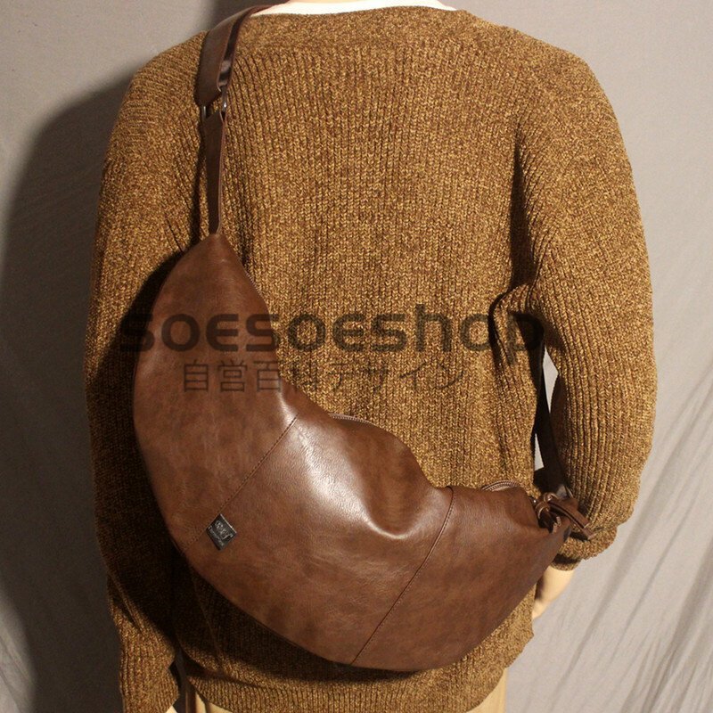 - 大容量 PU革 レザー ショルダーバッグ 斜め掛けバッグ メッセンジャーバッグ 通勤 斜め掛けバッグ 肩掛け鞄 ダークブラウン