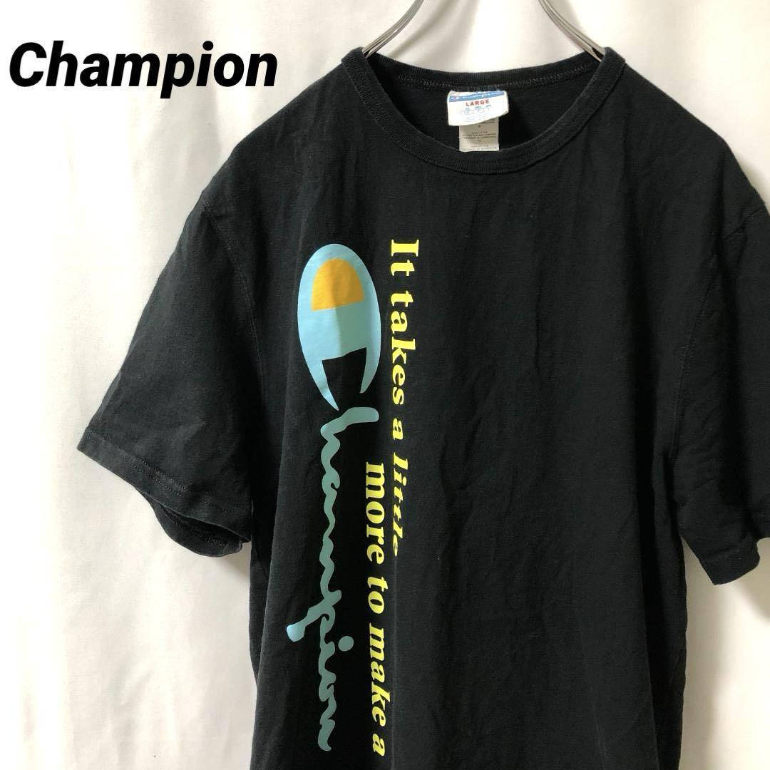 - N-4100 Champion チャンピオン アメリカ古着 ロゴ プリント ブラック Tシャツ 半袖 XL メンズ