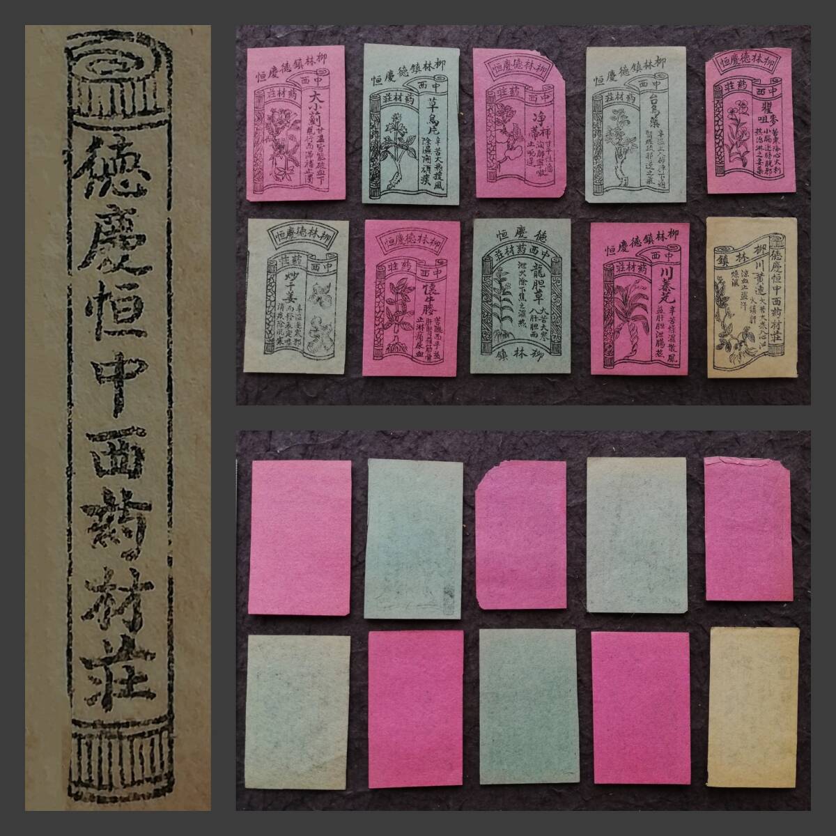 - 中華民国期 薬標 薬方 10枚 柳林徳慶恒 薬材莊 検索:銅版画 宣紙 木版刷 薬舗 漢方 唐本漢籍 傷寒論 金匱要略 千金方 本草綱目 套印 白棉紙