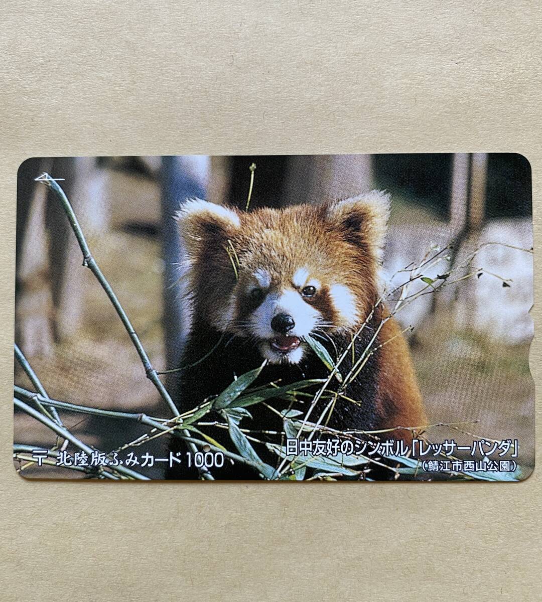 - 【使用済】 ふみカード 北陸版 日中友好のシンボル 「レッサーパンダ」 (鯖江市西山公園)