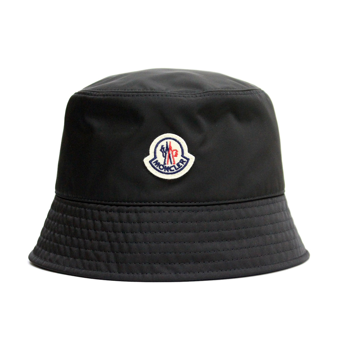 > 送料無料 11 MONCLER モンクレール 3B00038 5988K ブラック・ネイビー バケットハット リバーシブル ロゴワッペン size S