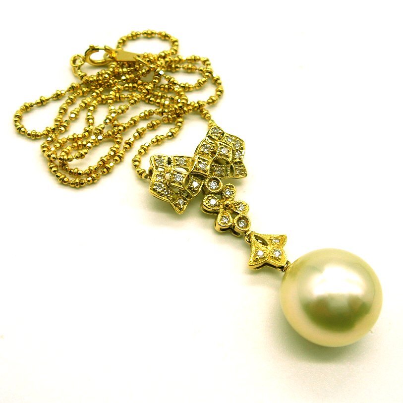 - PN588:K18YG 白蝶ゴールデン真珠 ダイヤ ペンダントネックレス