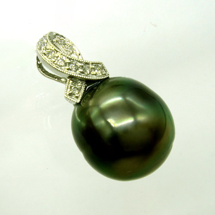 - PE922:K18WG 黒蝶真珠 ダイヤ ペンダント