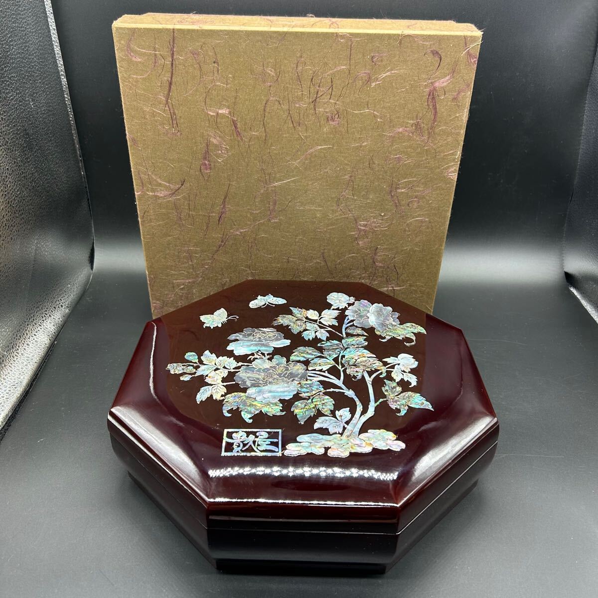 - 韓国伝統工芸 螺鈿細工 漆器 八角型 八角一段重箱 重箱 菓子器 小物入れ ユ4