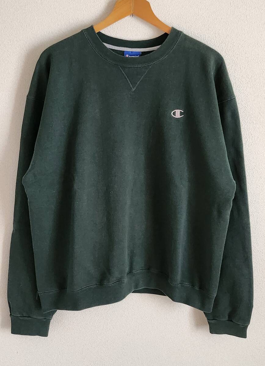 - チャンピオンスウェットシャツ前Vガゼットメキシコ製00sダークグリーンLワンポイント
