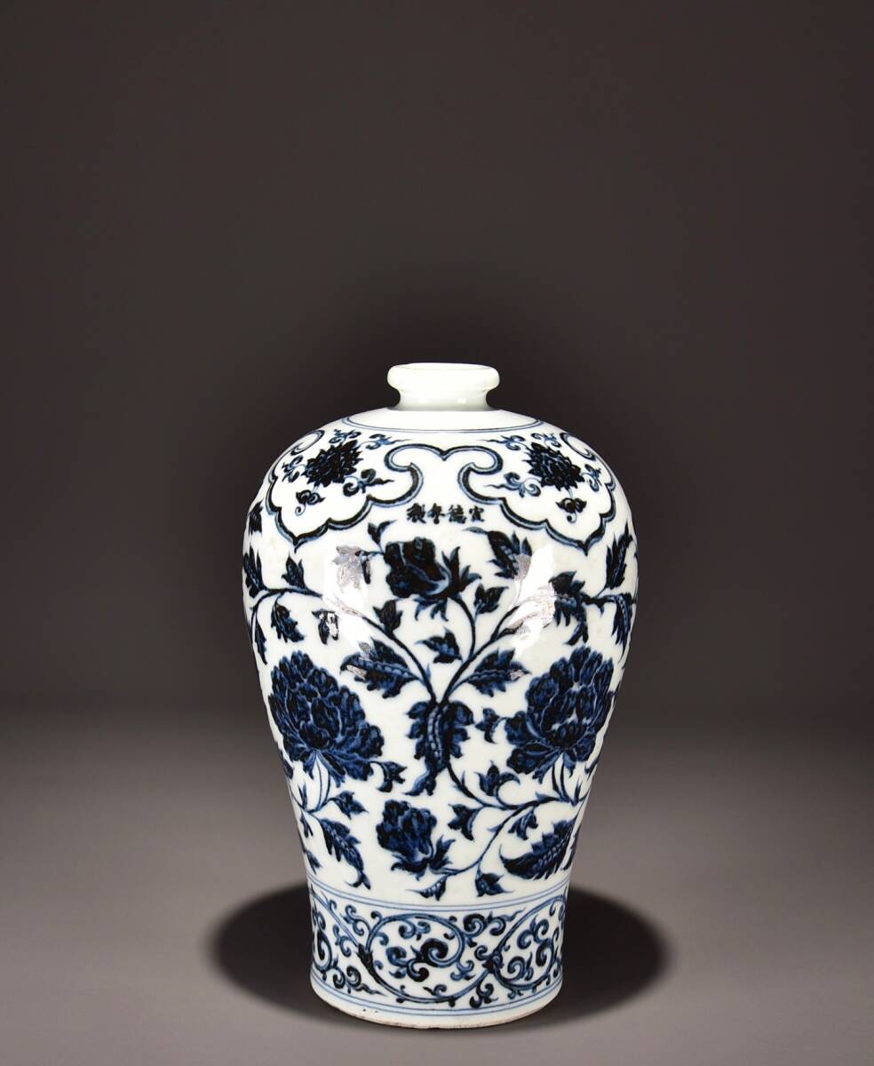 - 【蔵友館蔵品・明・宣德年製款・古陶瓷品・青花・纏枝牡丹紋・梅瓶】・希少珍品・置物・賞物・中国時代美術