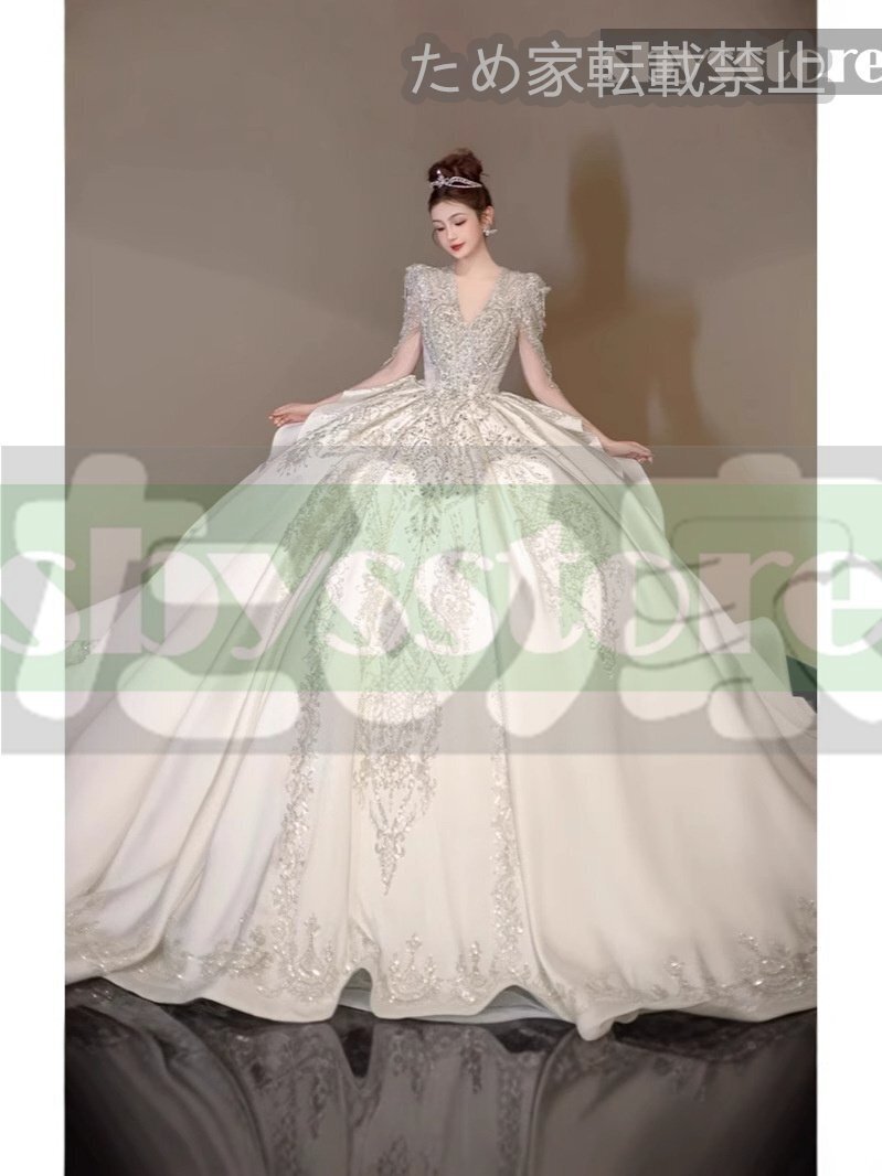 - 大値下げ メインウェディングドレス 2025年新作 新婦 長袖 ヴィンテージ 高級 重工 フレンチスタイル ラグジュアリー 大きなトレーン
