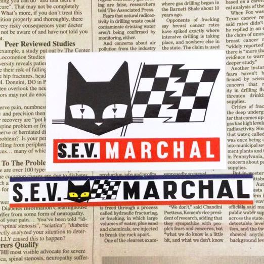> ステッカー 2枚セット/MARCHAL マーシャル ネコ ヘッドライト レーシング 車 バイク カスタム 防水 シール 人気 ブランド アメリカン雑