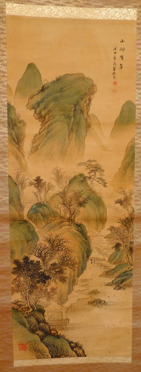 - 【お買得】掛軸 翠石『秋景之山水』絹本 署名落款 共箱有り 肉筆 真作 日本画 文人画 べらぼう 蔦屋 肉筆