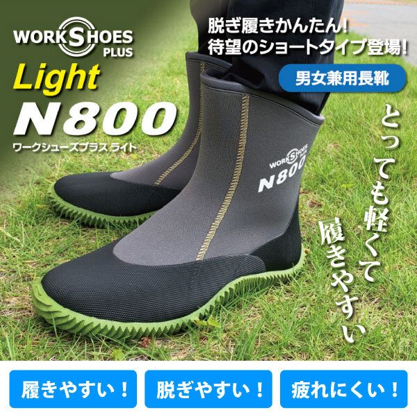 - アトム 作業長靴 ショートタイプ【 N800 】ワークシューズプラス ライト グレー×ブラック Sサイズ(23.0~24.0cm)防水 屈曲性 超軽量
