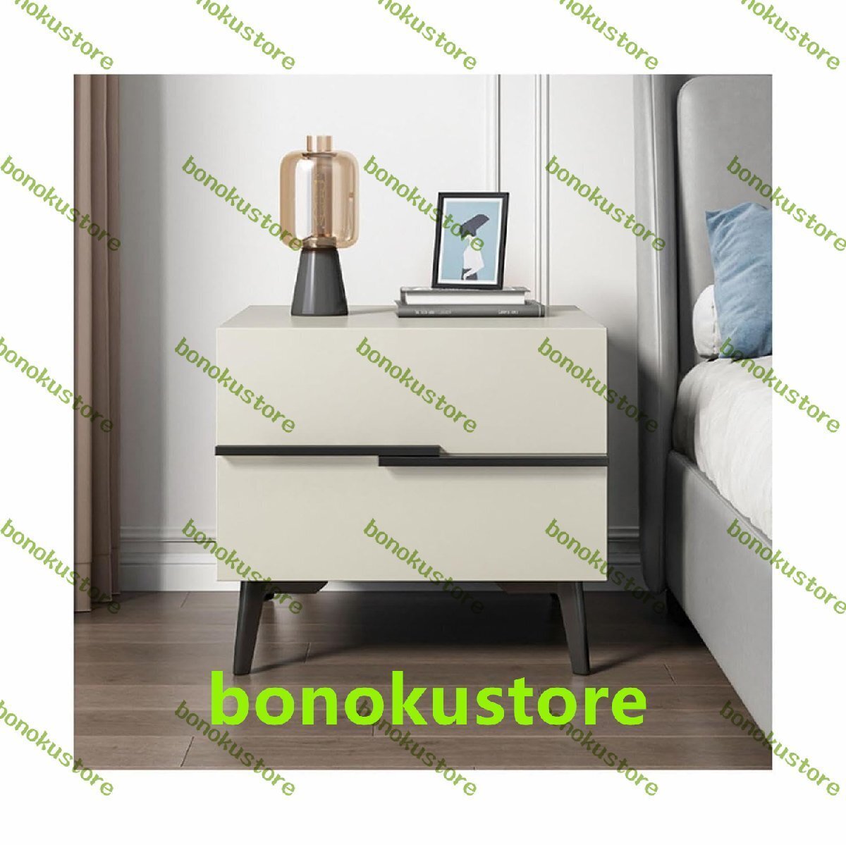 > エレガントなベッドサイドテーブル ナイトスタンド 2個セット エンドテーブル 無垢材ベッドサイドテーブル 引き出し2個付き 48*41*44cm