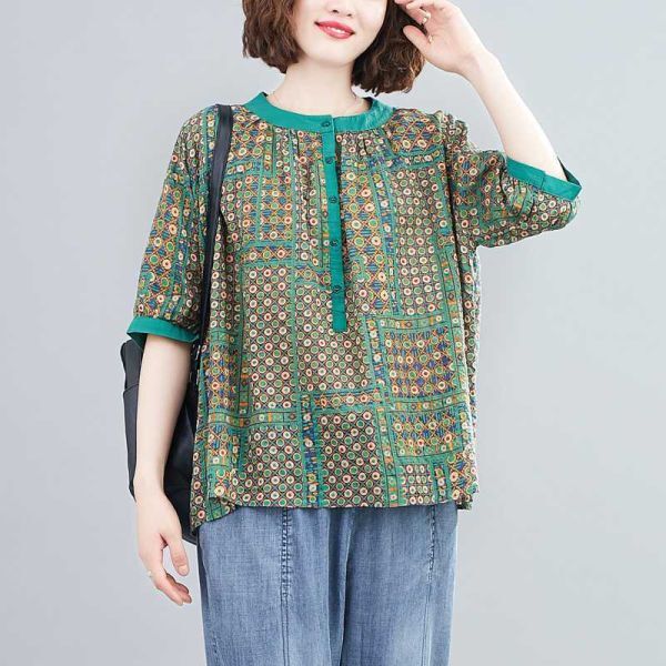 - ★★★レディース トップス ブラウス プリント柄 半袖 カジュアル FX82