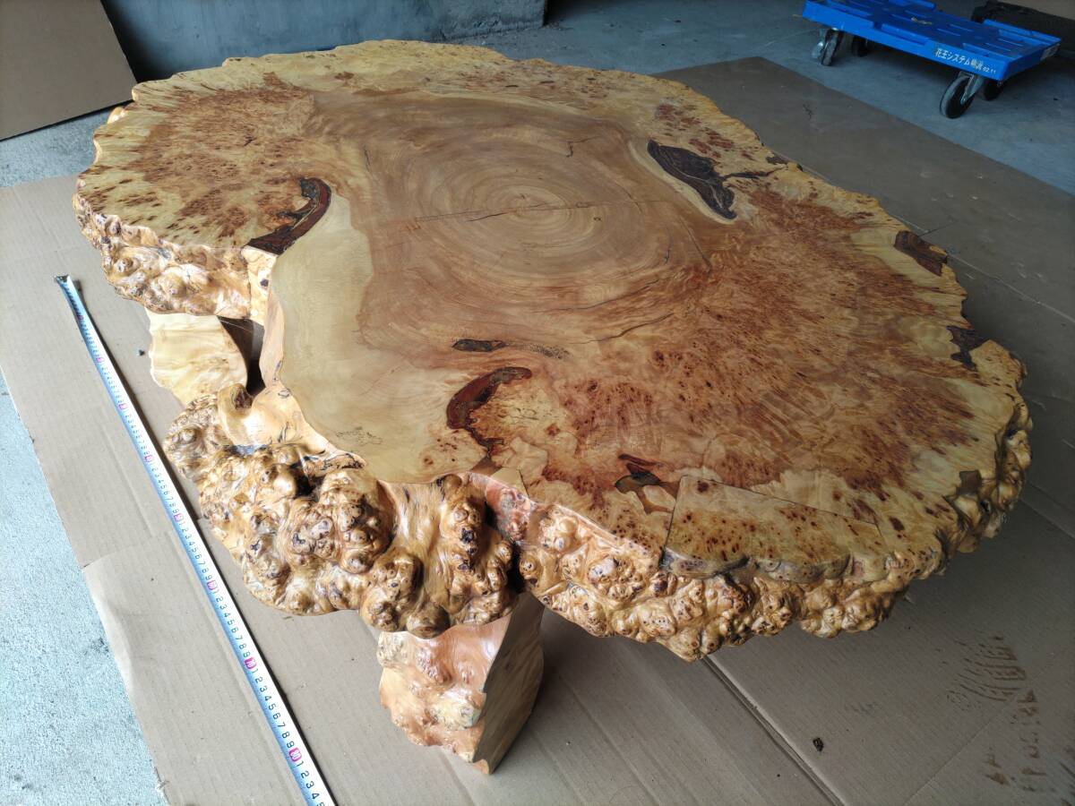 > ■送料無料!■瘤の座卓・H33×W95×D73cm■厚さ7cm■ちゃぶ台■木製■天然木■一枚板・未使用保管品(NO・ミ)!