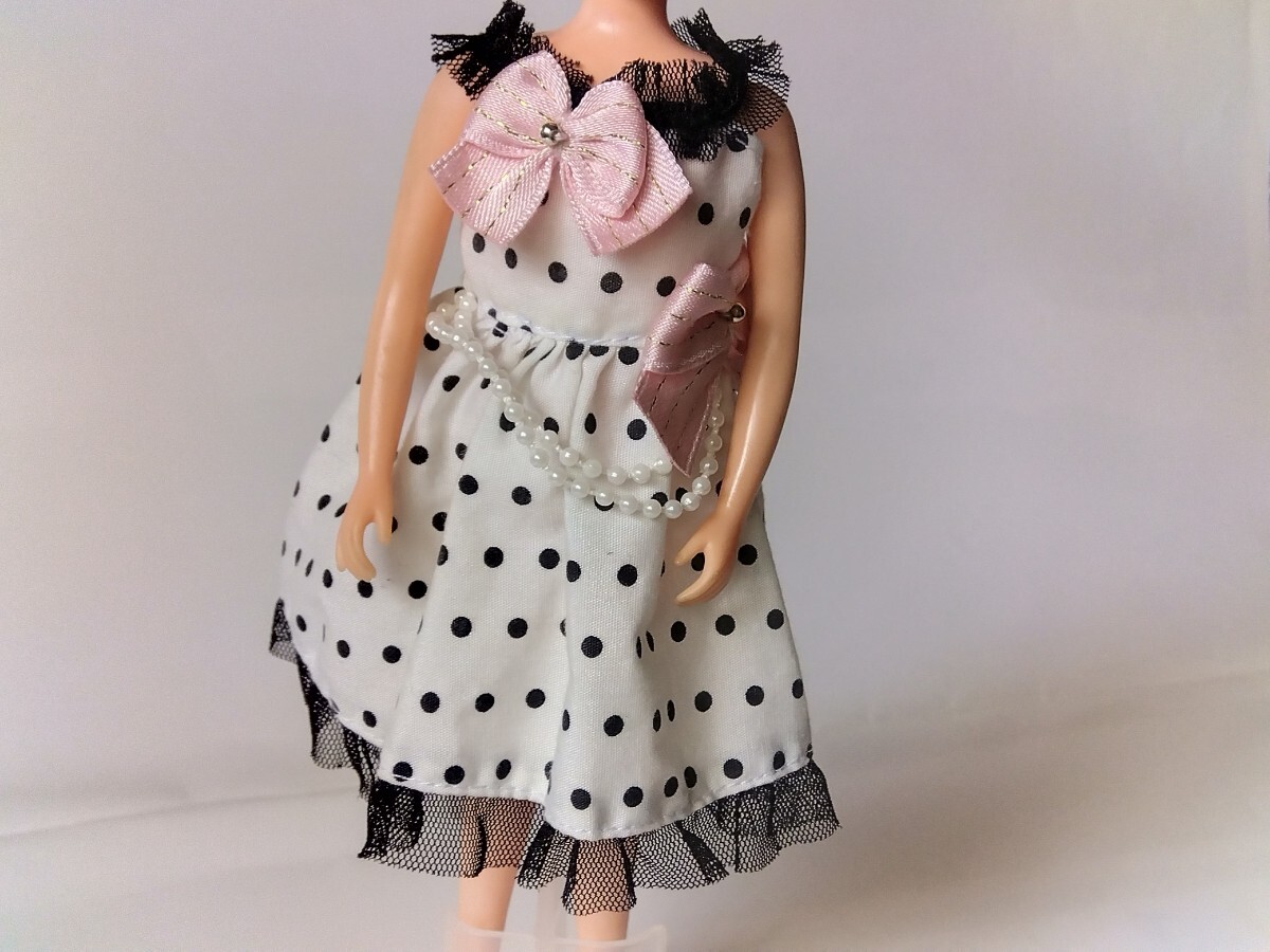 - リカちゃん 洋服 ワンピース ホワイト×ブラックドット リボン付き 着せ替え おままごと タカラトミー 小物 玩具