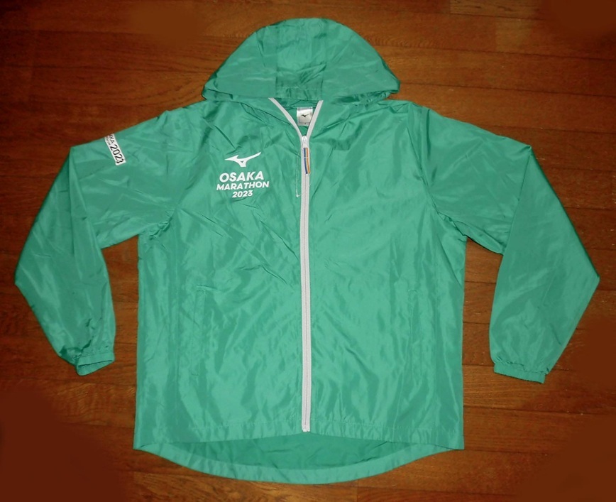 - OSAKA MARATHON 2023 大阪マラソン フードジャケット ジップパーカー ウインドブレーカー ミズノ製 GRN F 未使用品/ジョギング ランニング