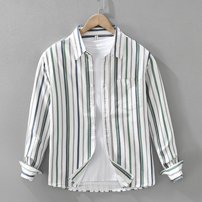- 入手困難 メンズ・新品 長袖シャツ シャツ トップス ストライプ ヴィンテージ トレンド カジュアル 心地良し【M7622】白 2XL