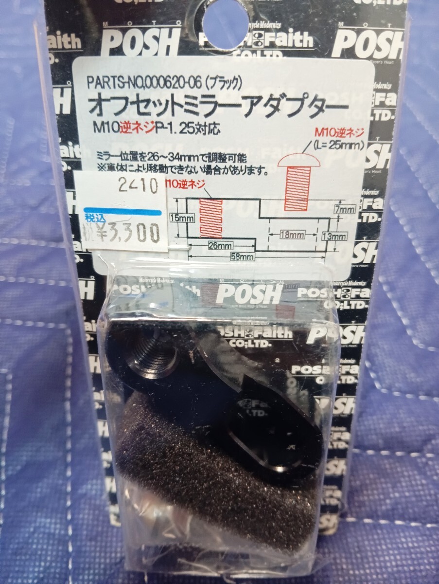 > ¥3,300- 未使用 ポッシュ アルミ削り出し ブラック オフセットミラーステー M10逆ネジP1.25対応 SR400 MT07 TW Z W CB GB GSX