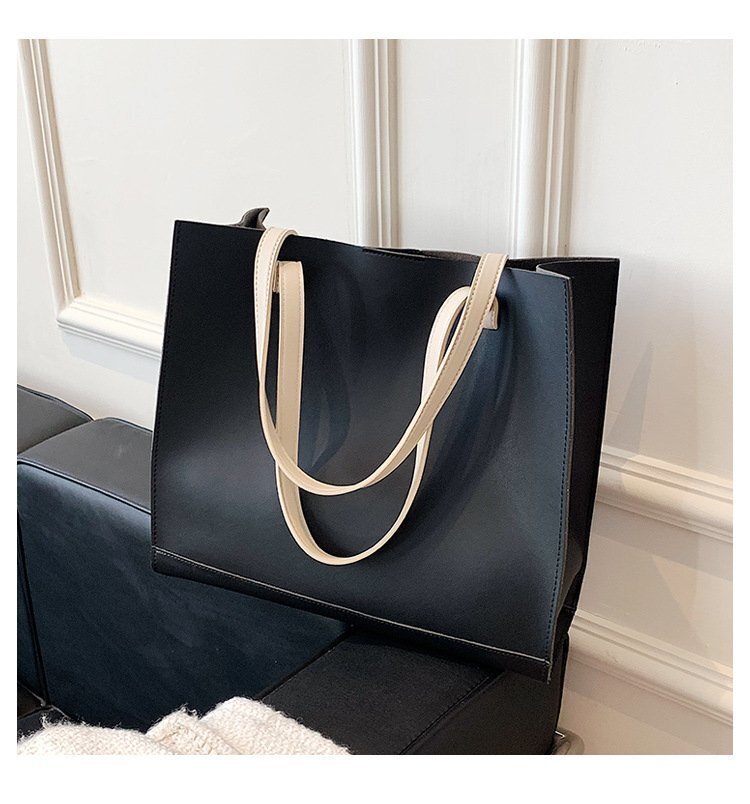 - ハンドバッグ トートバッグ レディース 鞄 カバン 肩掛け 手提げ レザーバッグ PUレザー 撥水 大容量 レトロ コーデ ブラック