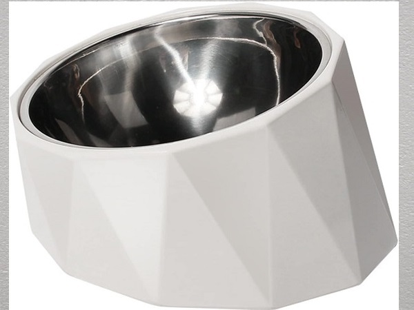 - Behaniu 犬 猫 食器 ステンレス 犬フードボウル Mサイズ 15度 白 新品 傾斜有 食べ易い 880ml メラミンスタンド 取り外し可 ダイヤモンド柄