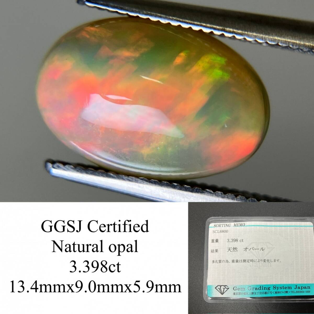 - オパール 3.398ct 宝石ソーティング付き 13.4×9.0×5.9 天然 ルース( 裸石 ) 4307YY
