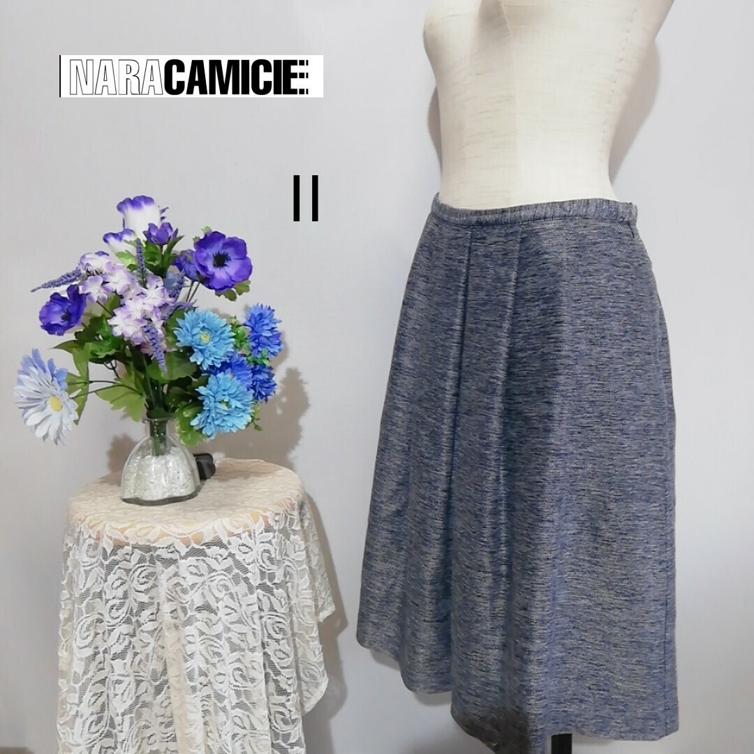 - 極上美品 ナラカミーチェ ひざ丈フレアスカート Lサイズ ブルー色系