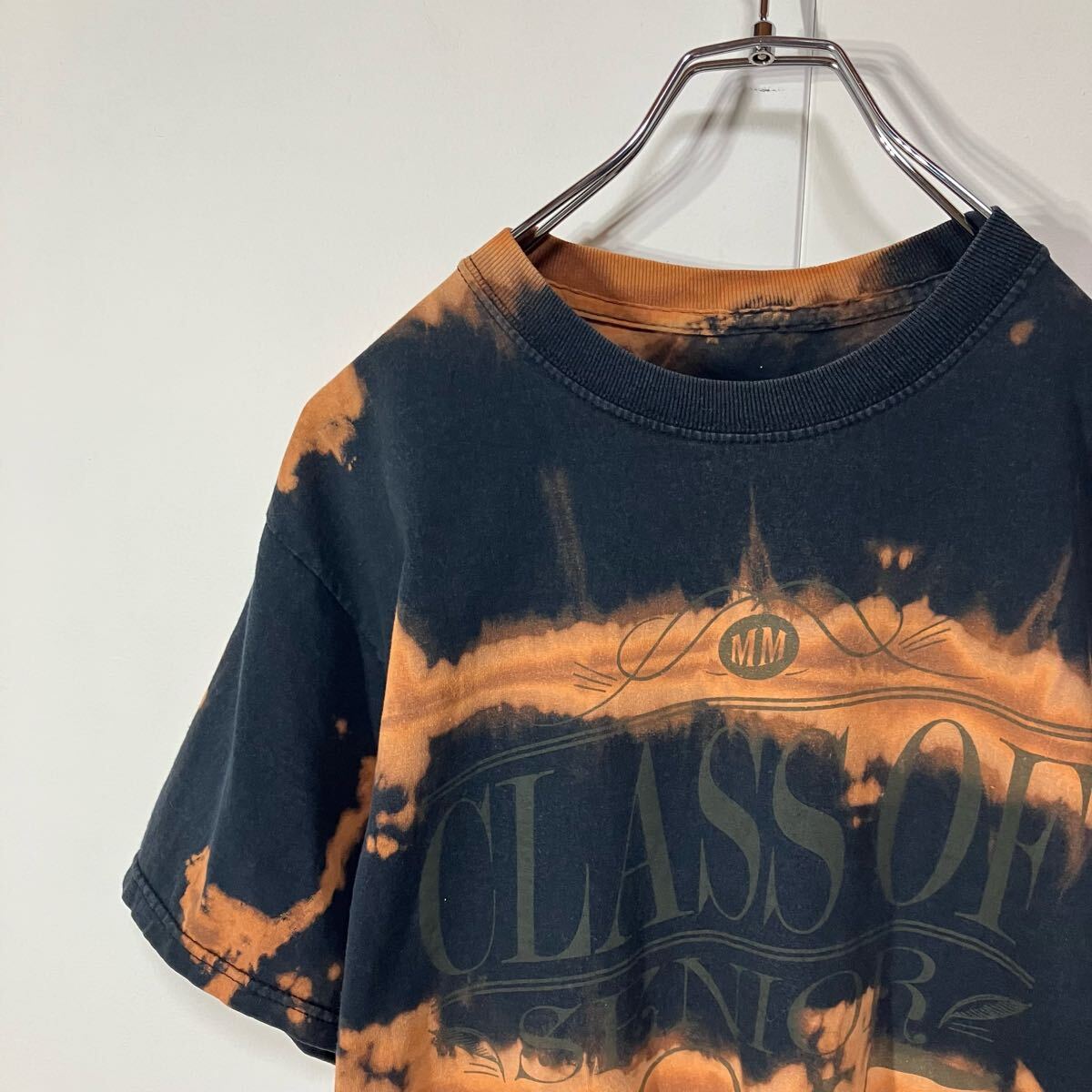 - 古着 プリント アート クルーネック 半袖 Tシャツ 一点物 ブラック オレンジ