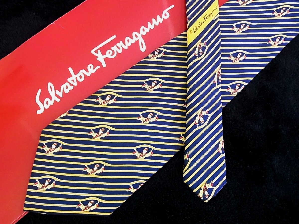 - ♪今週の特売980円~♪3889♪良品【FERRAGAMO】フェラガモ【人 ストライプ 柄】ネクタイ♪